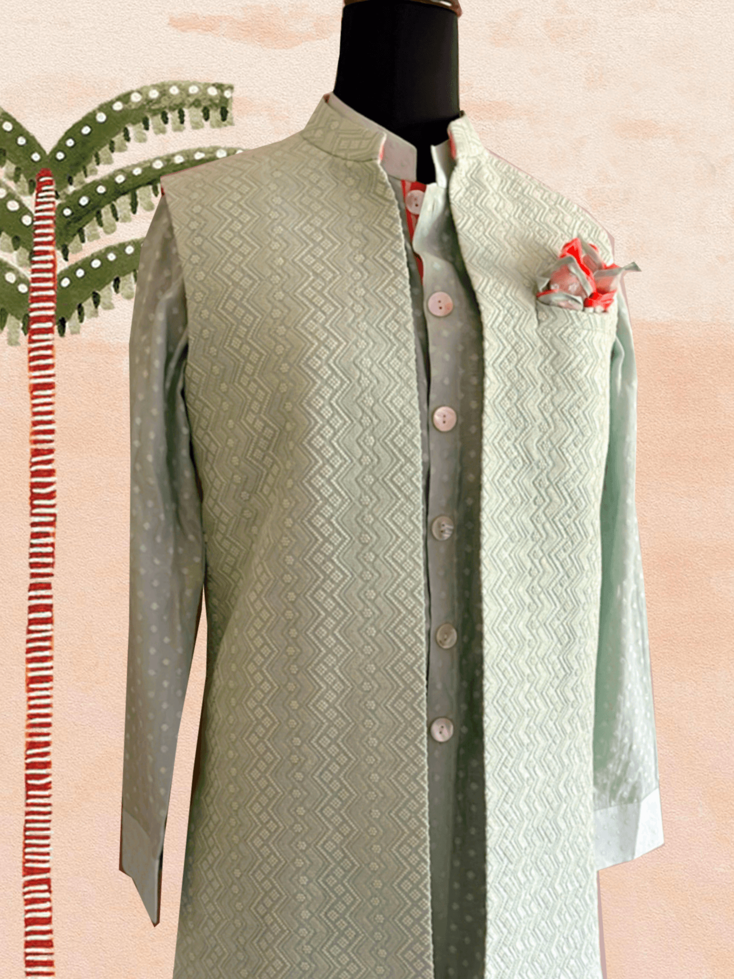 Long Embroidered Bundi Jacket Set
