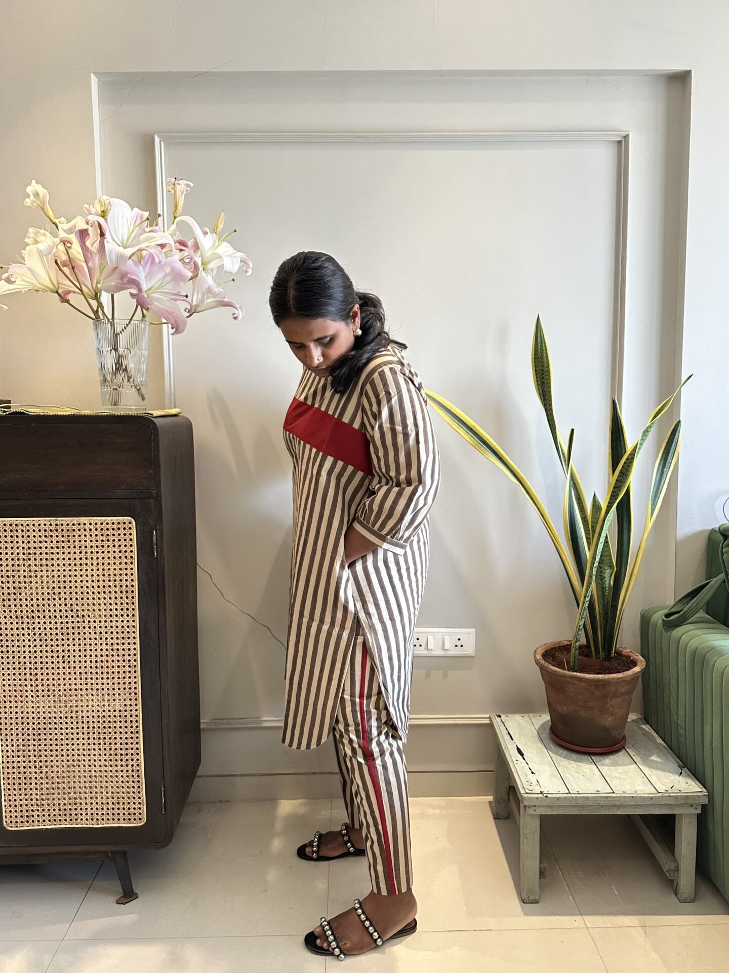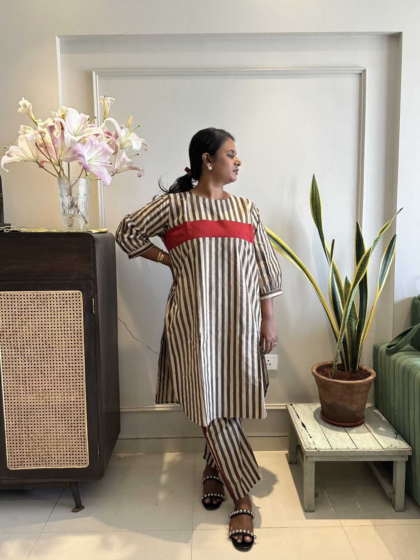Stripes tunic with red stripe paired with matching pants, perfect for Summer Outing.